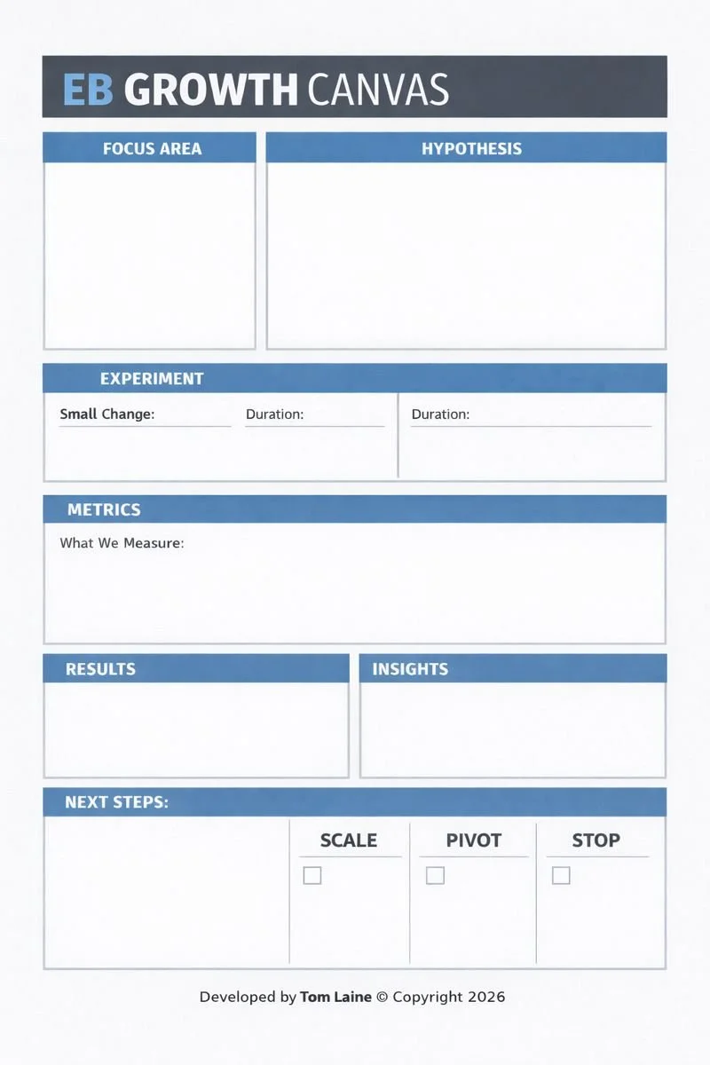 The Growth Canvas defines strategic prioritisation (what to test first and why).